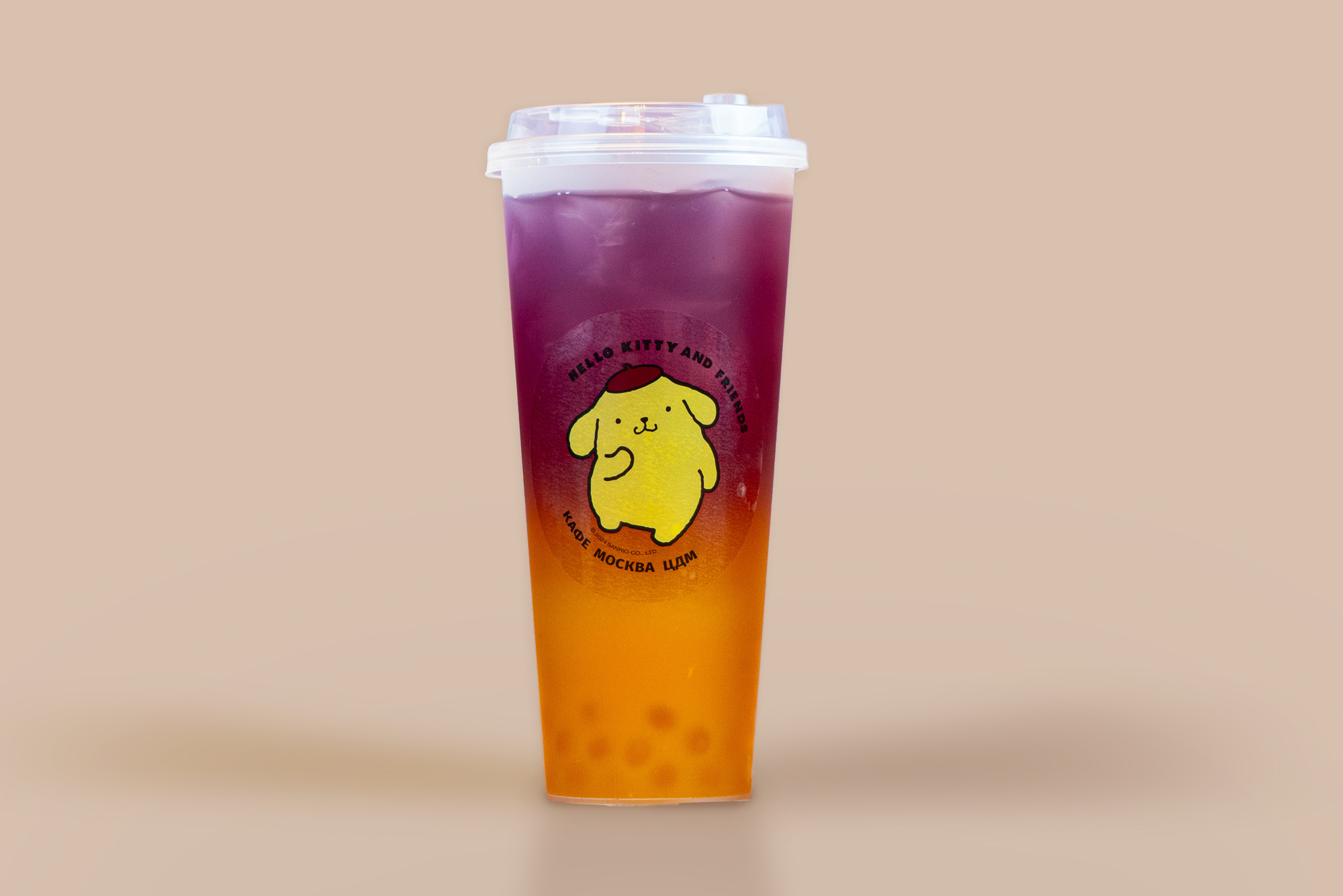 Освежающий жасминовый чай , натуральное пюре маракуйи, с волшебным эффектом чая анчан , которым под воздействием кислинки от пюре из синего чая превращается в приятный сливовый оттенок